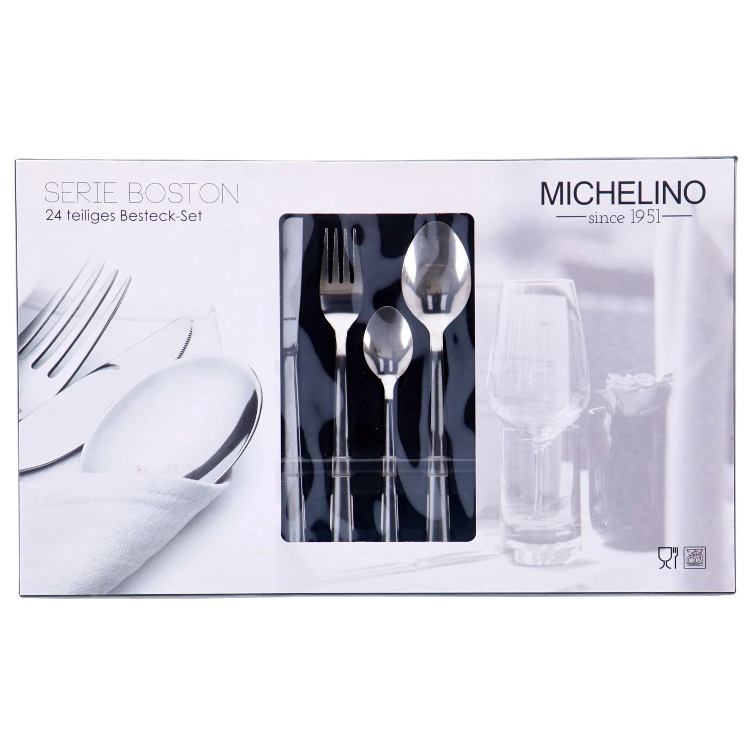 Dit bestek van Michelino is geschikt voor 6 personen. Vul je lade met het mooie 24-delige bestek van hoogwaardig RVS. De set bevat 6 tafelmessen, 6 tafelvorken, 6 tafellepels en 6 dessertlepels. Na gebruik kan het in de vaatwasmachine schoongemaakt worden.