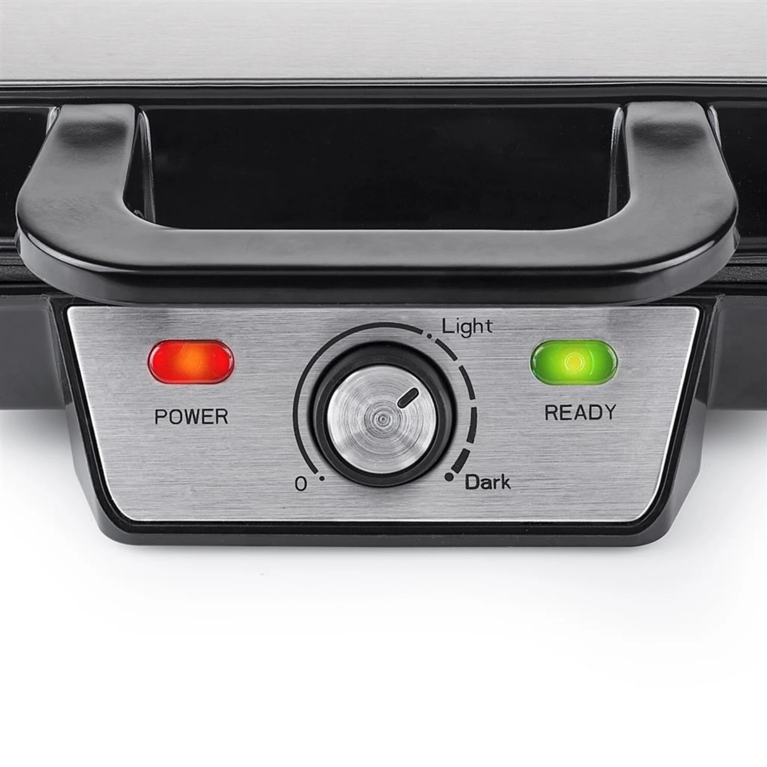 - Met een vermogen van 1000W is het wafelijzer snel op de gewenste temperatuur